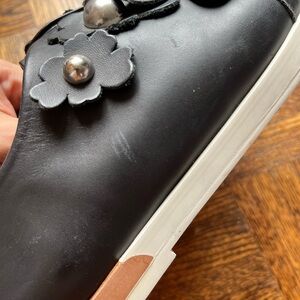 MIISTA London Leather Black and white Studded Flower Loafers size 11
