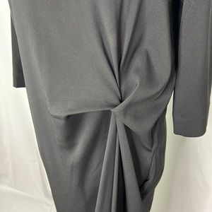 The perfect travel dress. It is lightweight, wrinkle resistant, has pockets and 2 side slits and a cool detail of a twisted knot at the waist. Very easy to dress up with heels and jewellery or go casual with a jean jacket or sweater.
