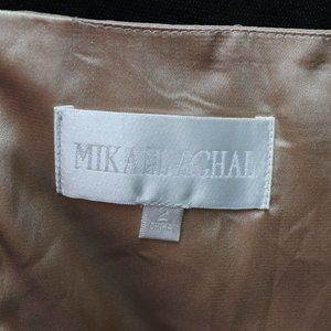 There is something to be said about a little black dress...it is chic and stylish, it is classy and timeless, it requires minimal to zero styling, it is the "GO-TO'' when all else fails. This designer Mikael Aghal dress embodies all these qualities and then some! Lace bodice emits a playful, and sexy appeal yet conferring sophistication with bow accent, structured long sleeves and sharp pencil skirted lower half. Bodice is lined in a skin tone fabric.