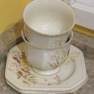 Two teacups with matching saucers - Mikasa Continental Ivory, Ferndale F4002,