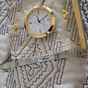 ❤️ MIKIMOTO Clear Lucite Battery desk Clock Gold Bezel Quartz Movement