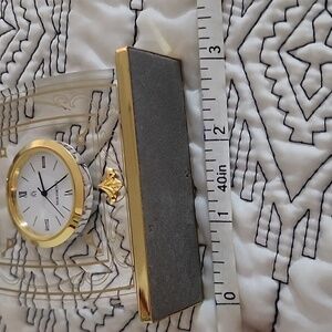 Elegant Mikimoto table clock featuring a stunning gold design. Perfect for adding a touch of luxury to your home decor.
