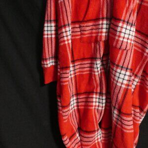 Full length red, black and white plaid fleece pajama with hood, onesie