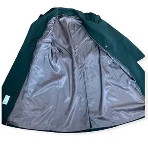 Excellent condition. Comes with a removable liner. No size tag but fits a large. Comes with extra buttons. Only sign of use is writing on the care tag. Not seen when worn. See photos for condition and measurements to ensure proper fit. Colour is a dark army green.