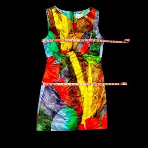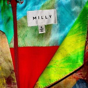 Add some color to your wardrobe with this Milly painted print sheath dress. Featuring a primary color Andy Warhol-inspired color palette, big paint stroke print, a classic figure flattering sheath silhouette and V-neckline. From day to night this Milly number can be dressed up or down. In pristine, pre-loved condition.