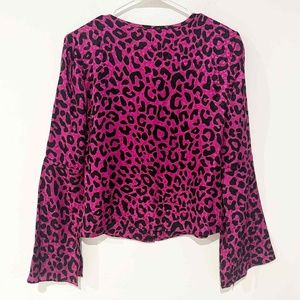MILLY Leopard Print 100% Silk Fuchsia Blouse