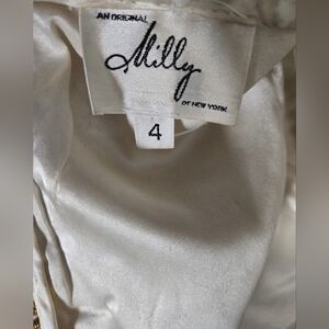 MILLY OF NEW YORK Gold and Black Lace Midi Dress with Waist Bow. Size 4
