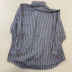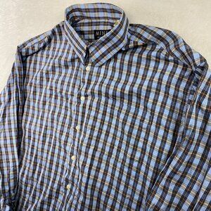 MINE Men’s Long Sleeve Classic Fit Orange Blue Checked Button Down Shirt Sz 2XB