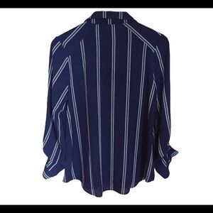 MINE Pinstripe Button Down Blouse With Adjustable Sleeve Length Navy Blue Size Medium