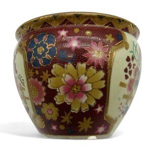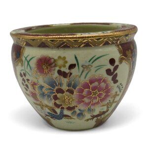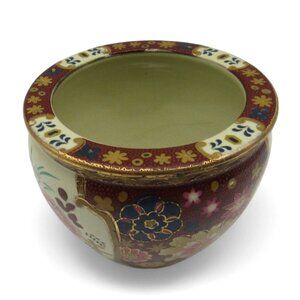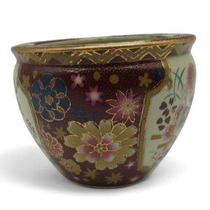 MING DYNASTY Ceramic Fish Bowl Pot Birds Floral Gold Accents 4 inches