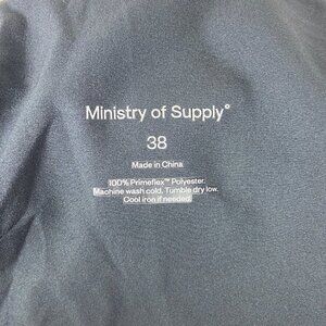 Ministry of Supply Mens Kinetic Chino Short in Grey and Size 38. 100% PrimeFlex cotton. Belt loops. Zipper fly with button closure. Front and back pockets. Machine washable. Made in China. Excellent like new condition. No visible flaws.