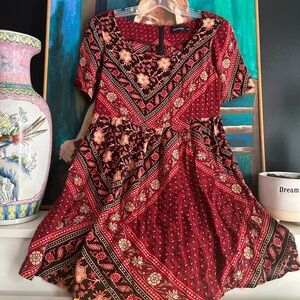 MINKPINK Red and Black Floral Mini Dress M