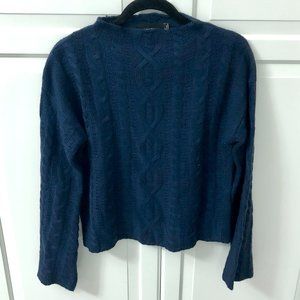 Don't wait to get your hands on this MinkPink Navy Waiting Game Knit Turtleneck Sweater with bell sleeves, order it now and be prepared for the winter in style!