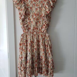 Never worn summer dress from MINKPINK (from Urban Outfitters). Very cute colors and style. The size is XS (Made in China). There are openings at the waistline on both sides, which makes the dress more stylish and perfect for summer. Since moving out, I am selling this dress without having the chance to wear it even once.