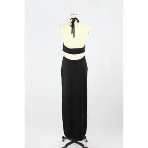 MIOU MUSE East Hampton Black Knit Halter Neck Cut-Out Bodycon Midi Dress, Size L