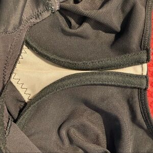 “This underwire bodybriefer features sexy, sheer paneling which allows the garment to adjust to your body and create a perfect fit. The double panels provide extra firm control and shaping, but maintain a smooth look under your clothes. Choose it to support your bust, shape your midriff, and slim your tummy & hips.” Some loose wispy elastics. Can be easily trimmed. EUC