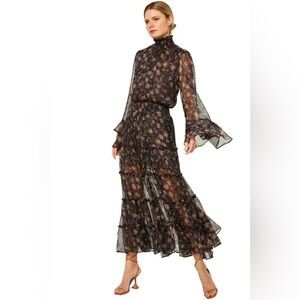 MISA LA Bethany Tiered Chiffon Maxi Dress