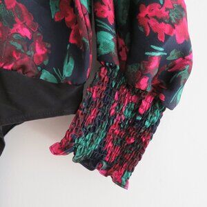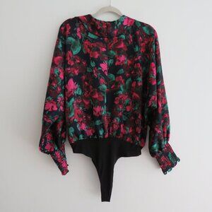 MISA LOS ANGELES Talah Floral Ruffle Satin Bodysuit Boho Romantic - Size L