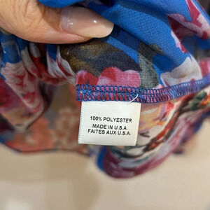 Made from semi-sheer organza with an allover floral pattern, this flowing MISA top is an attractive choice for date night—wear with slim black jeans and strappy heels for an alluring ensemble.