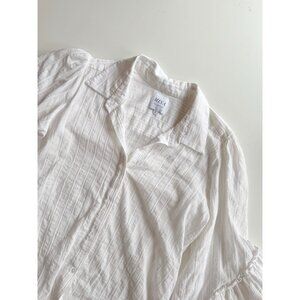 MISA Rehmy White Cotton Metallic Striped Flared Sleeve Pom Pom Blouse, Size S