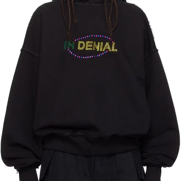 MISBHV Black "In Denial" Hoodie, crystal embellishments, Women's Size Small.