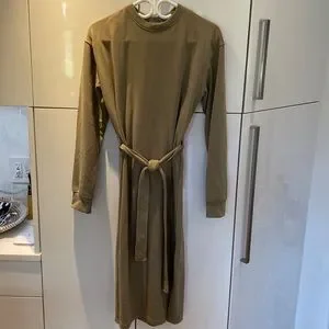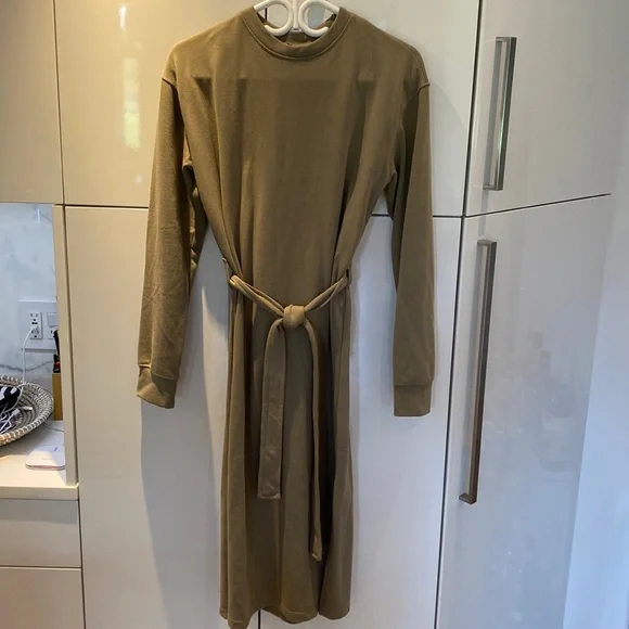 This khaki dress is in 10/10 condition, never laundered, worn a couple times. Fabric is free of pilling or stains. Good value, great casual business wear with shoes, boots, or trainers!