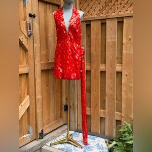 🆕 MISHA COLLECTION 🧿 NWOT Red Sapphire Sequins Mini Dress, Sz XL - US 10