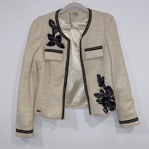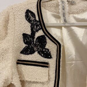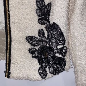 MISMASH tweed ivory blazer with black lace embroideries details Size M
