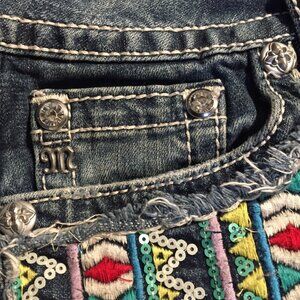 MISS ME EMBROIDERED RAW HEM JEANS SHORTS SIZE 30