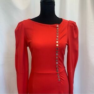 MISS Sixty Rare Red Long Sleeve Button Front Puff Shoulder Bodycon Dress Sz M
