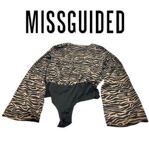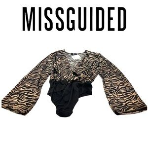 MISSGUIDED Bodysuit Black Brown Wrap Front