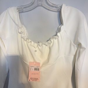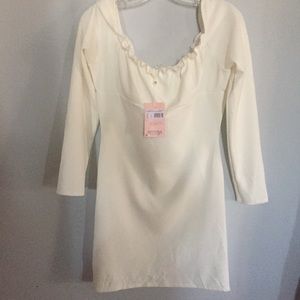 MISSGUIDED Mini Dress. Size 10. This would be perfect for that trip down south. Can be worn on or off the shoulder. Elastic around shoulder. Empire waist. Long sleeve. Polyester type material. Bow in front
