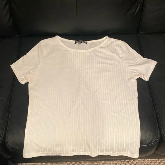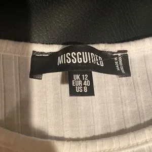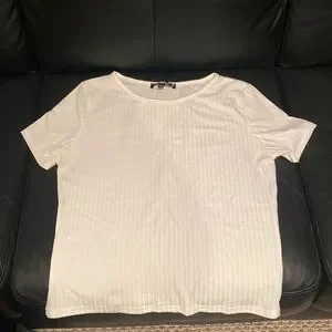 Used ribbed white t-shirt from Missguided in London, UK. In decent condition but there is some pilling on the shirt.