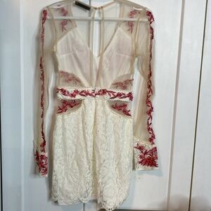 MISSGUIDED | Unique Tulle embroidered lace long sleeve cocktail dress - US4