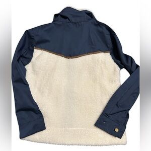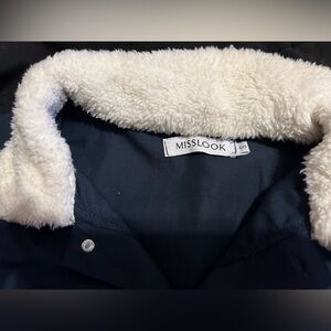MISSLOOK Sherpa button up jacket white and blue size small in brand new condition super soft and a bit of a country aesthetic to it