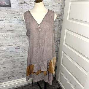 MISSLOOK Tan Brown Flowy Tank Dress Lagen Look Artsy Boho Ruffle XL (real M/L)