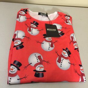 MISSLOOK Ladies Holiday / Christmas Snowman Winter theme tunic / long sleeve longer length top Size M/L. New with tags. 95% polyester and 5% elastane. Machine washable. Made in U.K. Great to wear with leggings.