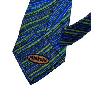 MISSONI Blue/Green Striped Art Silk LUXURY Tie ITALY