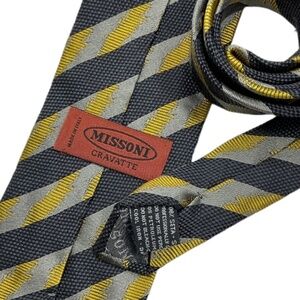 MISSONI Gray/Gold Striped Art Silk LUXURY Tie ITALY