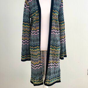 MISSONI Women's Long Duster Open Cardigan Multi-colour Waves Flared Sleeves Boho