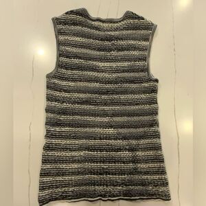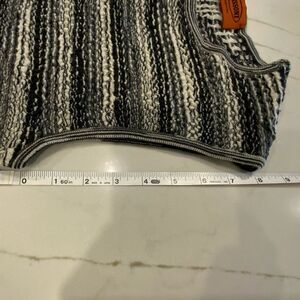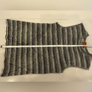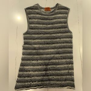 MISSONI knit sleeveless top in colours black, grey and cream. Very versatile colour for any wardrobe. This has been previously loved and tags have been removed. Please refer to photos for flat measurements in inches. The fabric has a generous stretch to it so please note that when you view the measurements.