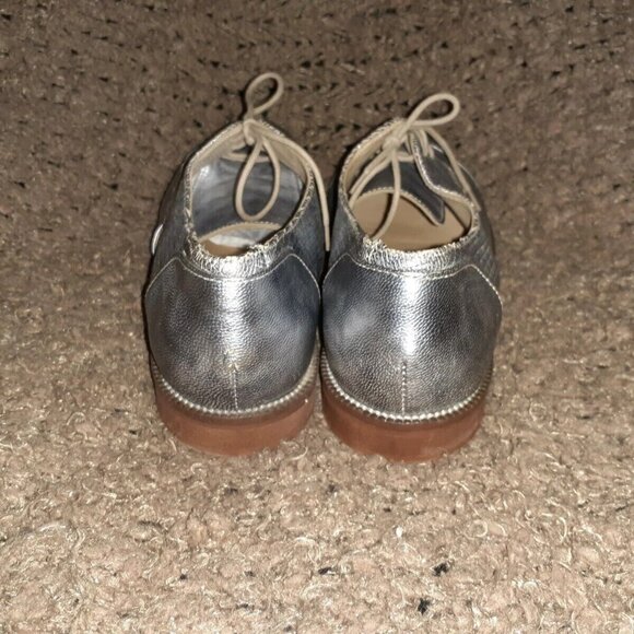 MITICA-Distressed Silver Cut-Out Derby Loafers-Lace Up-Sz 40-Excellent