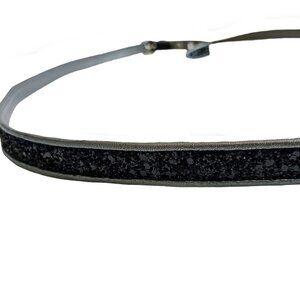 Crafted from pewter color leather, this double tour belt features black sequin applique and silver buckle closure.