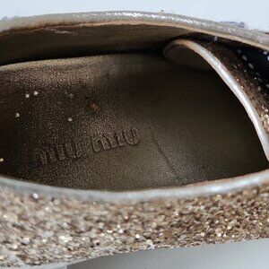 MIU MIU | Glitter Sneakers with Patches, Gold Size 35 MSRP: $650.00