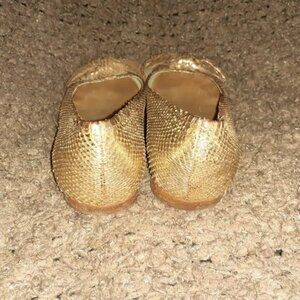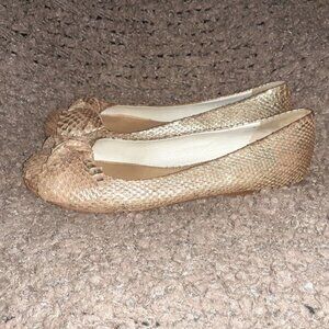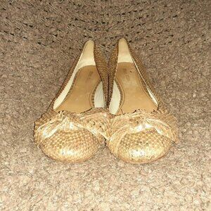 MIU MIU-PRADA Gold/Tan Snakeskin Leather Flats-Bow Detail-Sz 36.5-Very Good