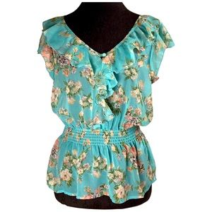 Adorable ruffled top Smocked waist No indication of wear Across bust - 21" Length - 25.5"