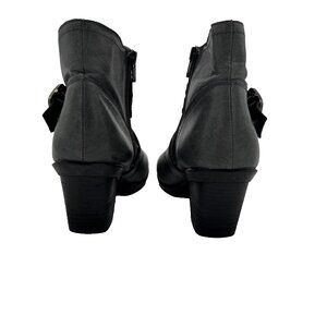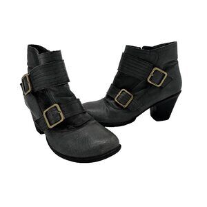 Elevate your footwear collection with these stunning pre-owned MIZ MOOZ "Evan" ankle boots, available now in excellent condition! Crafted with a luxurious leather upper, these boots in a gorgeous gray shade are the perfect blend of fashion and function. Featuring two stylish brass-toned straps with buckles and convenient side zippers, they offer easy access while making a statement.