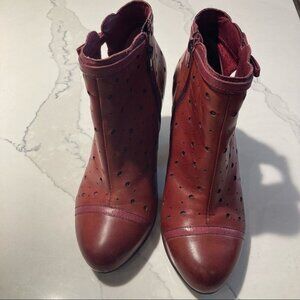 MIZ MOOZ Sz 8 Charla Wine Colour Laser Cut Out Dots Heel Zipper Closure