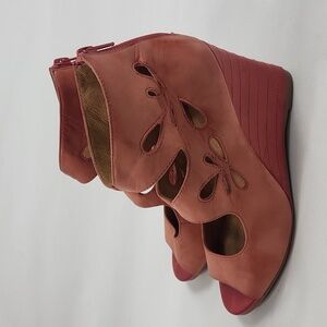 - Features: Cutout design, wedge heels