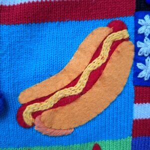 Americana theme: hotdog, hamburger, ice cream, stars, stripes, fireworks